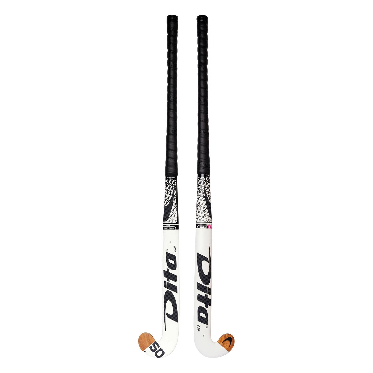 While hockey sticks were traditionally made from wood (oak, mulberry), today most sticks (and especially the most technical) are made from composites (fibreglass, carbon fibre and aramid fibre; Kevlar is the brand name of a type of aramid). Sticks can be made of 100% wood, wood with fibreglass or carbon reinforcements, 100% fibreglass, or fibreglass with varying levels of carbon content