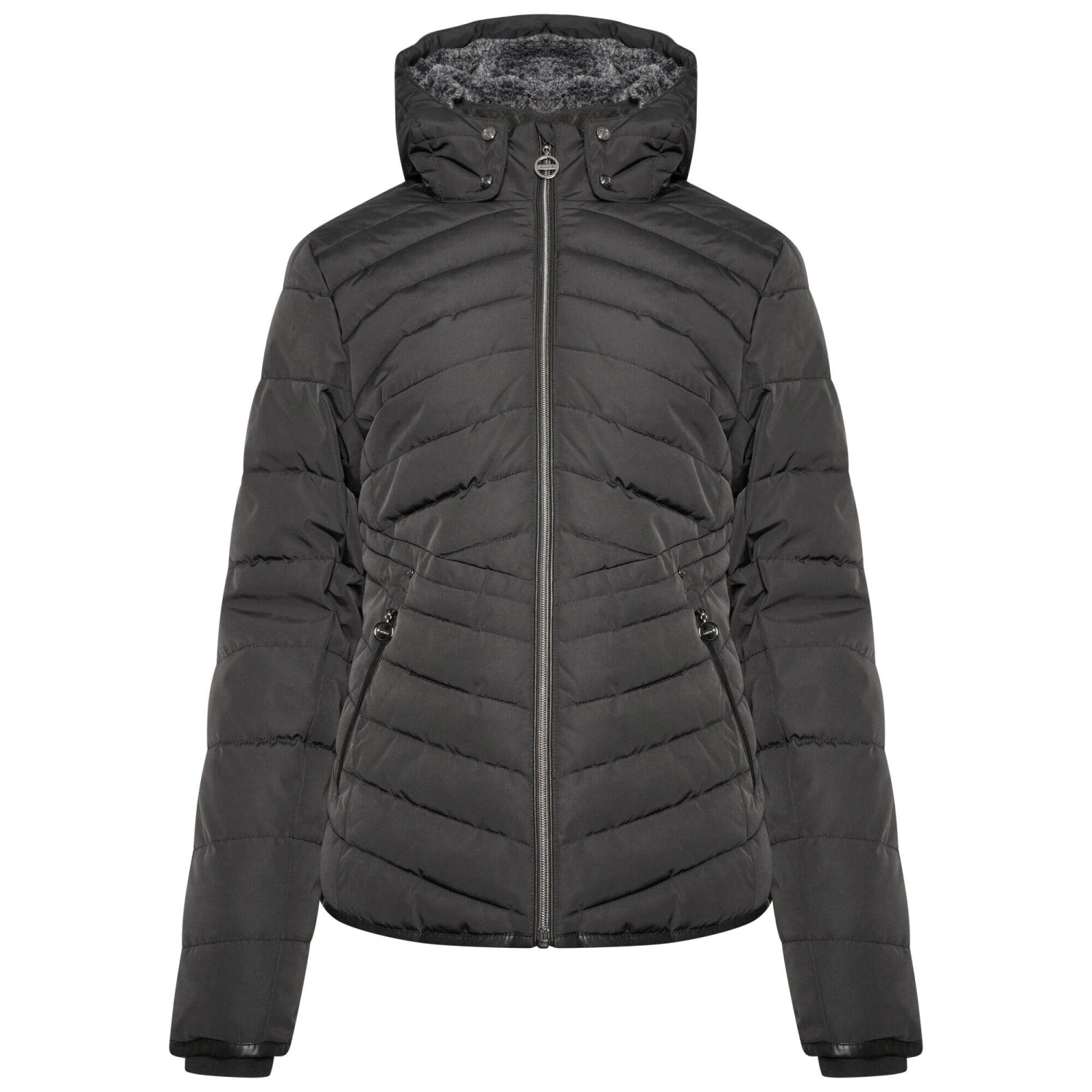 The Women’s Striking Jacket. Made with lightweight, waterproof and breathable ripstop fabric with a water repellent finish for ultimate protection from the elements. Featuring a faux fur lined collar and hood. This product is made using recycled plastic bottles.