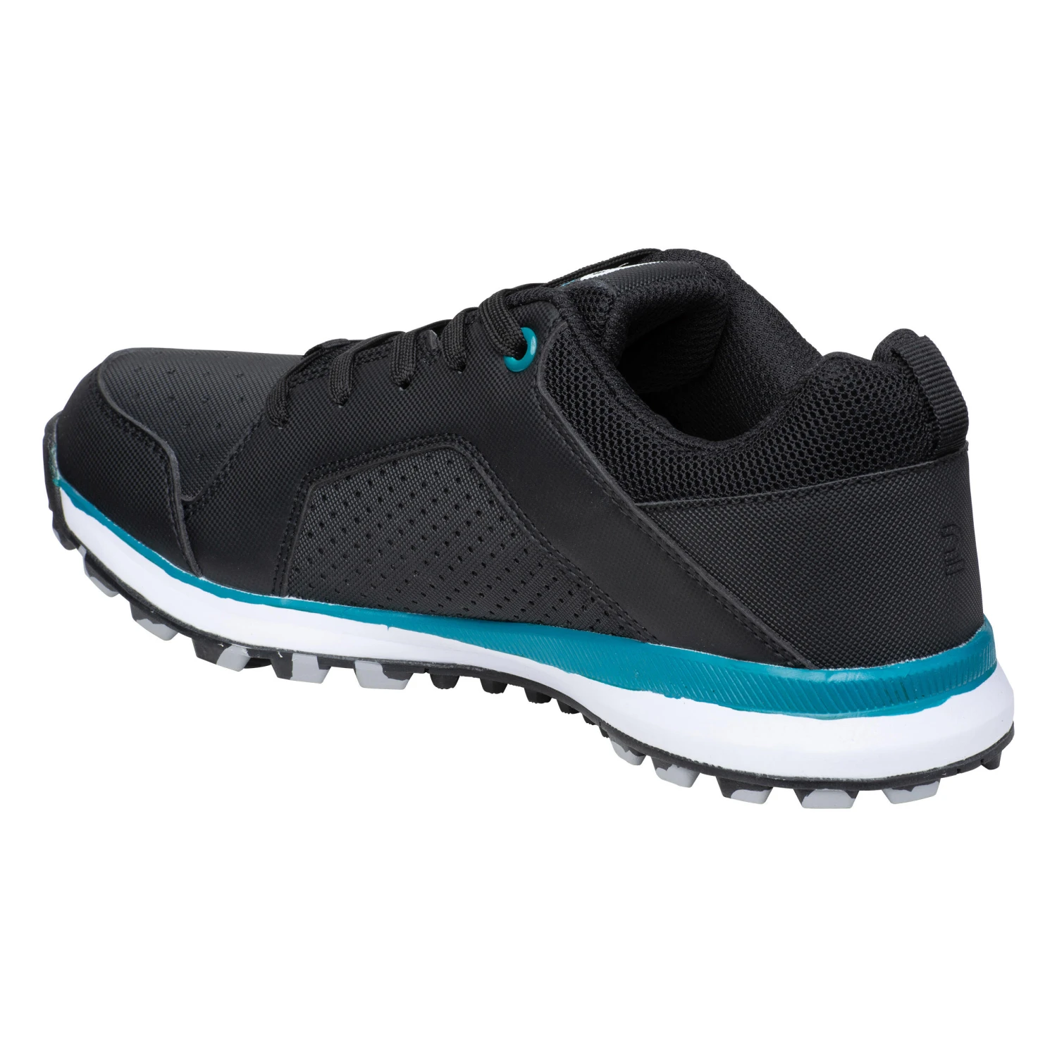 The outsole (the part of the sole in contact with the ground) is generally made of rubber and has spikes of various shapes and positions. It is harder than a trail shoe. It is adapted to synthetic, sandy, or wet pitches specific to field hockey. It ensures grip on the pitch, which is critical to field hockey.