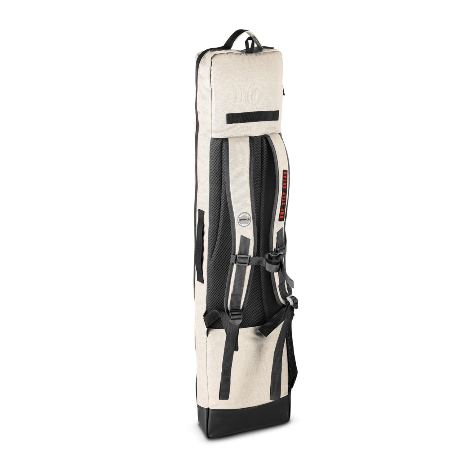 2 sheaths for 1 stick inside the bag, one on each side. One large zipped compartment. Three gusset pockets on the back side and one zipped mesh pocket on the inside of the front. One easy-access zipped pocket on the upper compartment for your mouthguard and other items. A mesh pocket on the right side for a water bottle or similar volume. Ventilation on the front.
