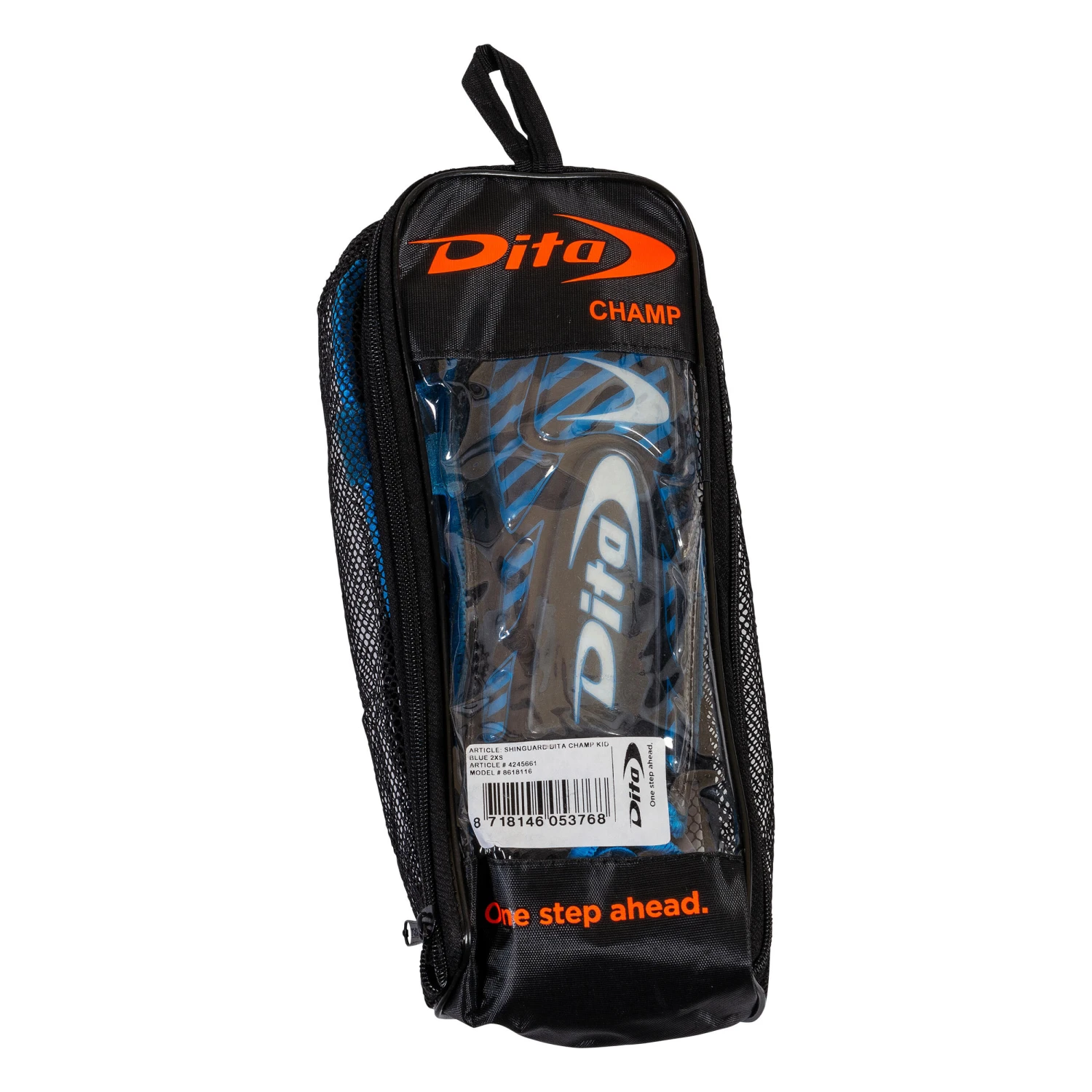 K-resin plastic shell to cover the shin. Lined with EVA foam covered with fabric on the side in contact with the leg. Extends downwards with a sewn ankle guard with small plastic shells over the malleolus, lined with low-density foam, and all encased in thick, elastic polyester fabric. Low-density foam also behind the ankle guard around the Achilles tendon.The ankle guard has an elasticated strap that fits under the foot.