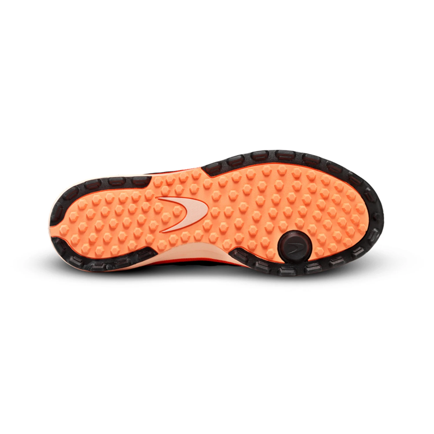Outsole: moulded rubber with conical studs for grip. Long, thin studs at the edge of the sole to stabilise the foot. In the front of the sole, under the 1st metatarsal head, directional PAD for easier changes in direction. / Midsole: flexible EVA for cushioning. / The outsole covers the front of the toes. / Insole: flat foam.