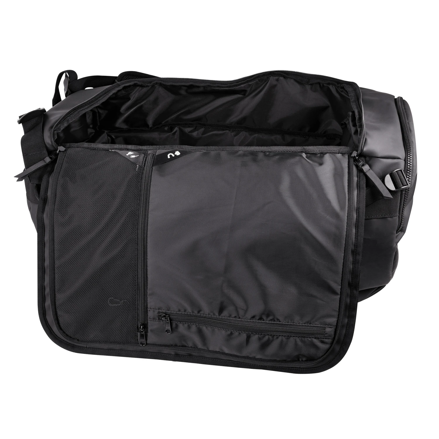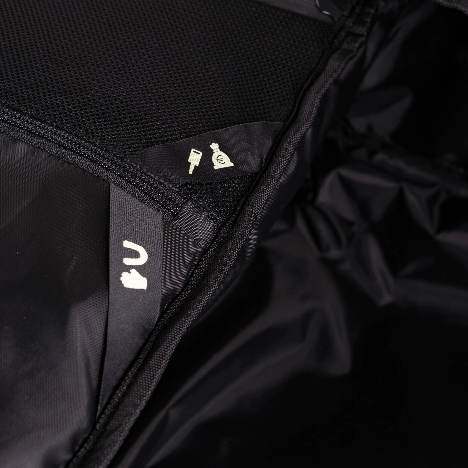 Concealed pocket in the seam on top of the bag for your phone or anything you want to access quickly. 2 neoprene handles for carrying it. 2 straps on the sides for your sticks. Luggage label pocket for the player’s name and number. 2 adjustable straps for carrying it as a backpack or shoulder bag.