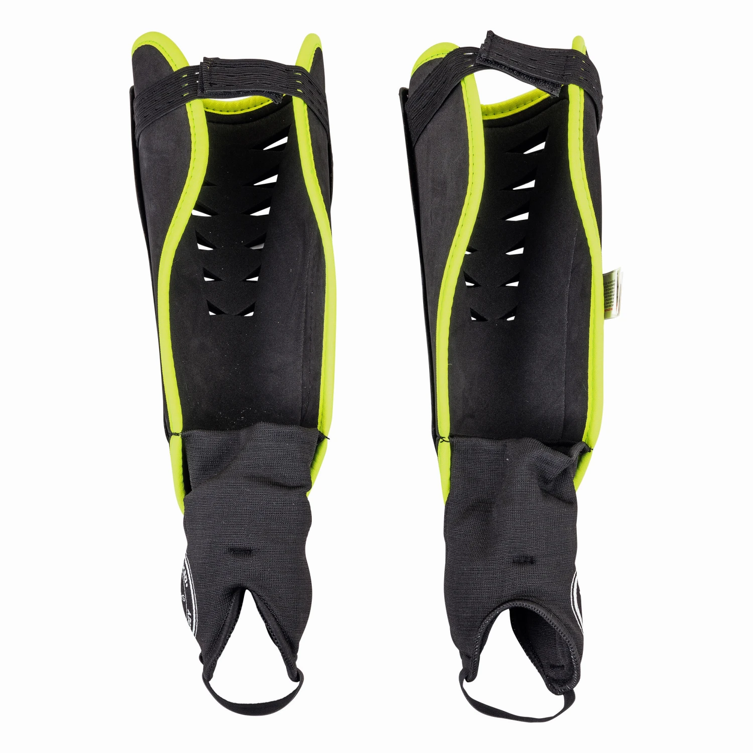 Place the shin guard as low as possible on your leg so that your ankles are well covered (make sure there are no pressure points and your ankle can move freely). Ideally, the top of the shin guard should come to 2 cm below your kneecap. Your shin guard should fit snugly around your calf without being too tight.