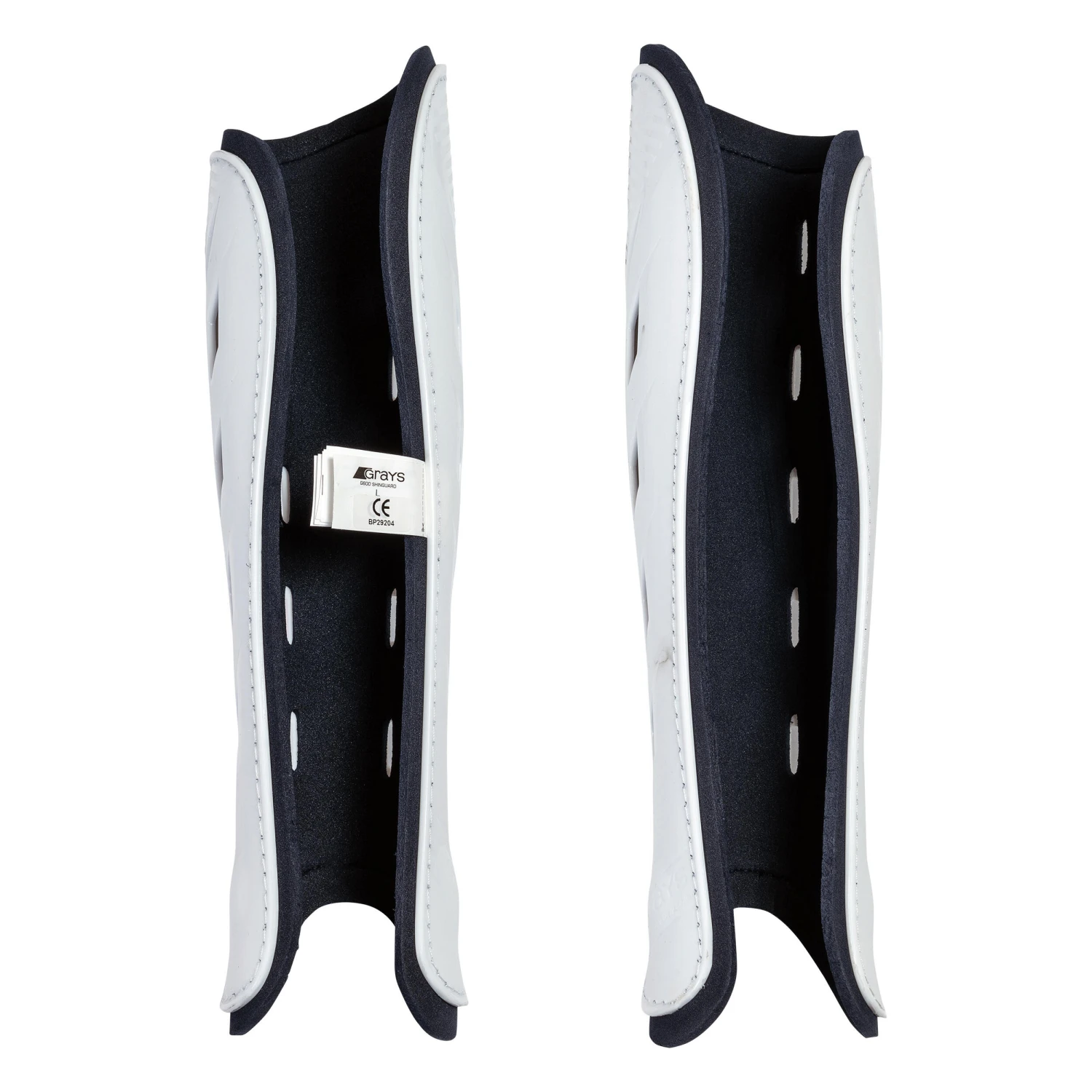 Anatomically designed shin guard with high quality materials and construction. Lightweight polymer shell with raised central spine to reduce frontal shin injuries. Unique ventilation design distributes airflow from the front and sides of leg. Left and right handed design, incorporating ankle padding.