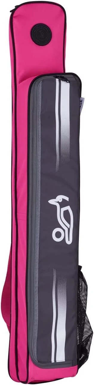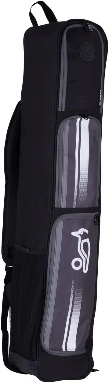 Up to 4 sticks. Stick compartment with three large sections for kit and shoes. Adjustable padded double shoulder strap.