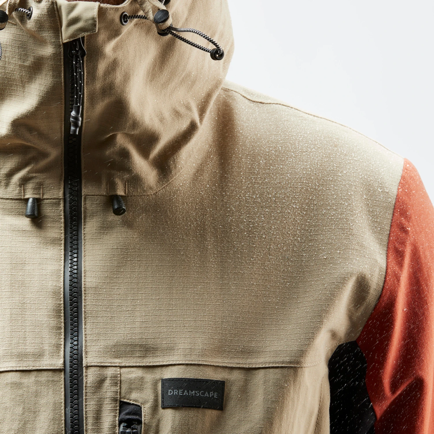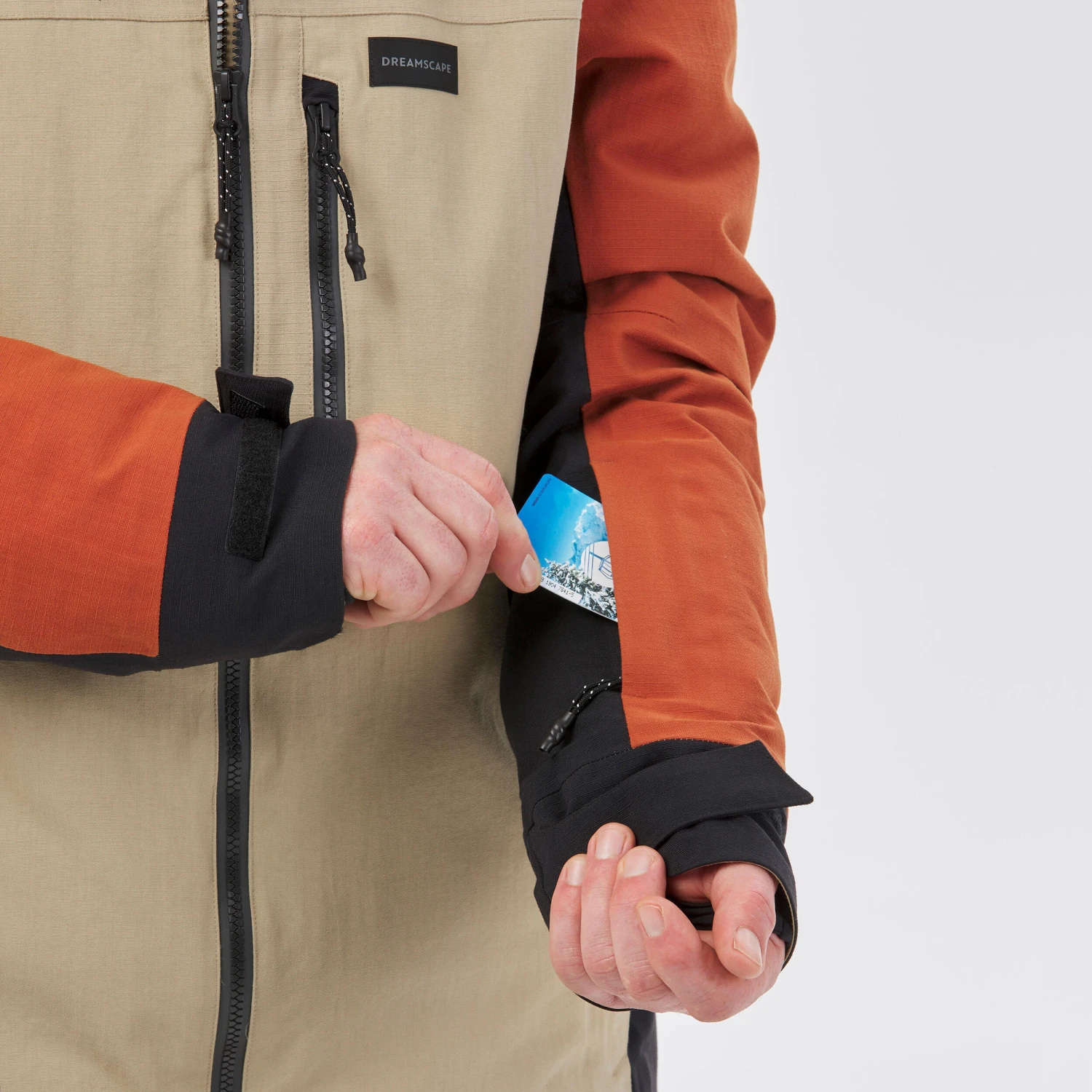 To withstand bad weather (rain, snow, wind, etc.), the jacket has been developed with a component and assembly that keep the water out and reduce wind chill. The waterproof rating is measured by placing the product in a special shower that replicates the real-life conditions encountered by snowboarders during use. Finally, we have spent a few days snowboarding, in all conditions, to validate the waterproofing of the product.