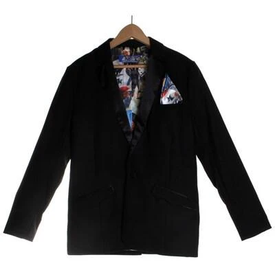 90% POLYESTER/10% RAYON WAIST LENGTH TUXEDO BLAZER, WITH STONE EMBROIDERY, PRINTED LINING, AND POVD LABELS. POVD COLLECTION.