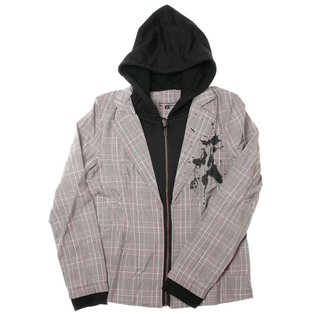 Yarn Dye Plaid Blazer with a Hooded Fleece attached on the Inside. Stone Shaped Pockets. Splaida Paint Screen Print with Stone Included.