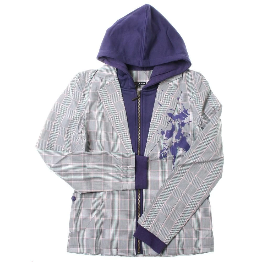 Yarn Dye Plaid Blazer with a Hooded Fleece attached on the Inside.