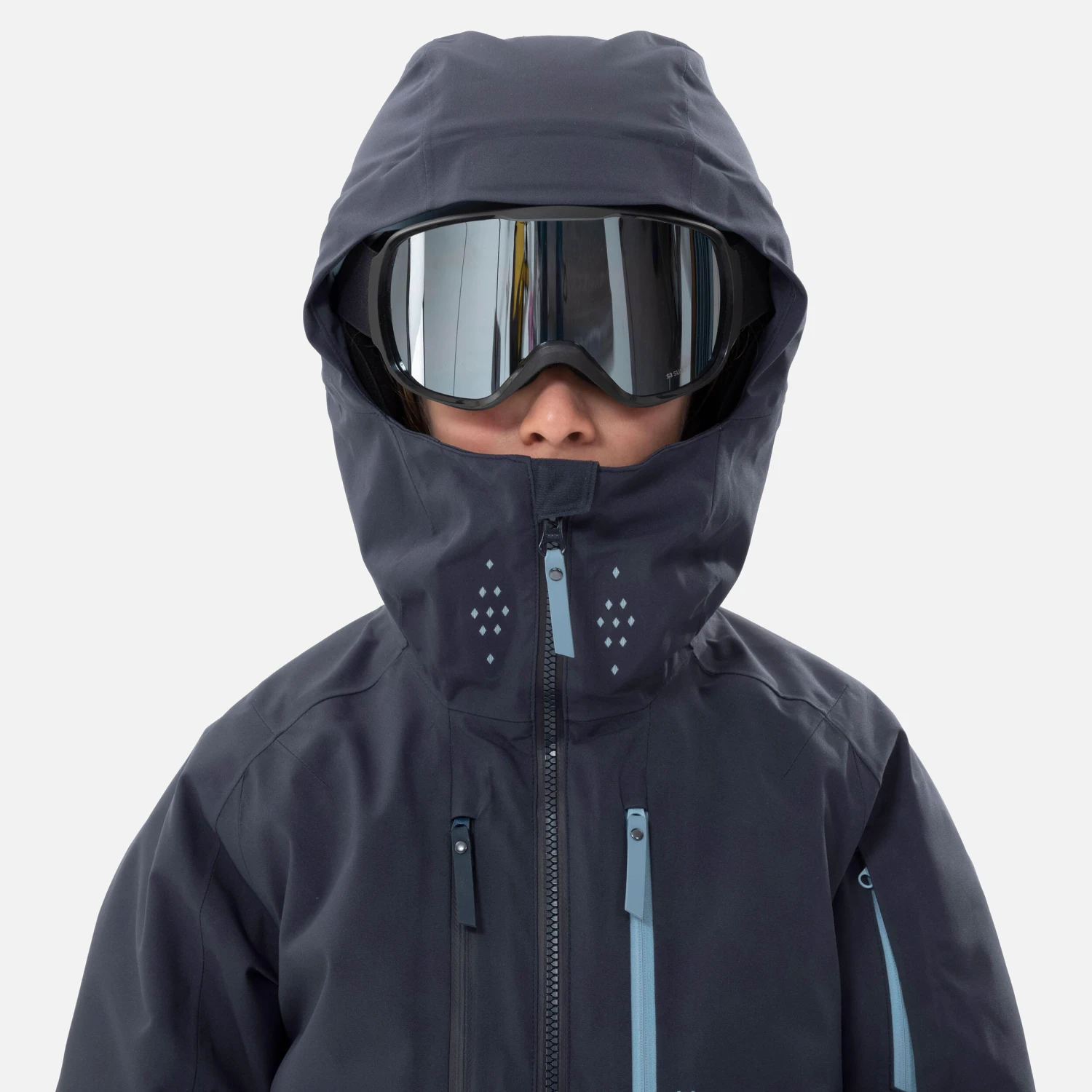 This Wedze ski jacket has an integrated 3D hood that tightens automatically. It moves with your head without obstructing it, in order to provide better protection in bad weather. It is compatible with helmets. The hood is preformed with a high collar for protecting the face in case of intense cold or strong wind. The flap of the zip closure is micro-perforated to facilitate breathing while protecting the face.