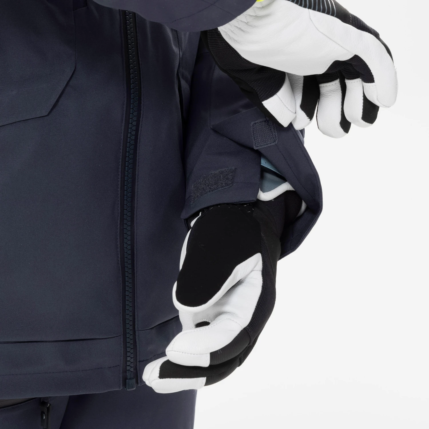 Wide, adjustable sleeves designed to fit over gloves. Elastane cuffs providing a perfect seal between the gloves and the jacket.