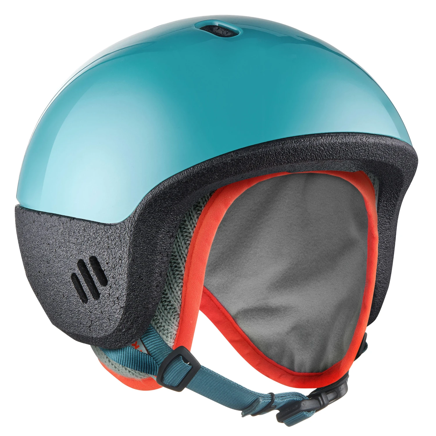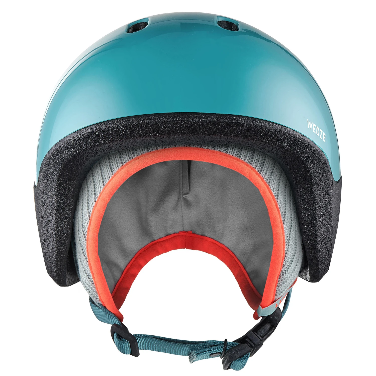 This baby ski helmet is compatible with the Wedze goggles. The goggles strap is worn over the ski helmet and passes through the helmet hook. The hat is also specially designed to be worn under the helmet.