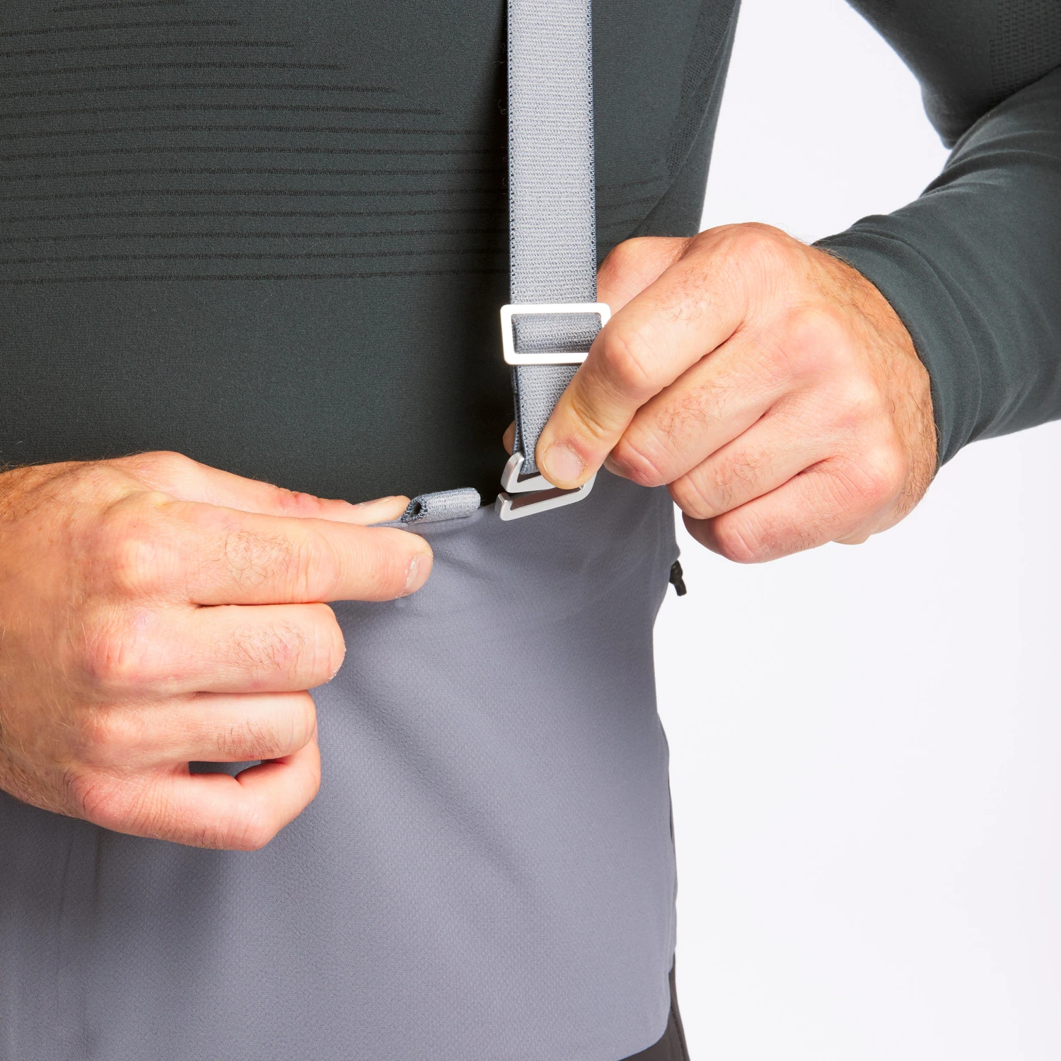 Around the waist, we have added a stretch component that gives great fluidity and reduces the usual waistband overlap in the mid section (base layer, trouser elastic, snow skirt, etc.).