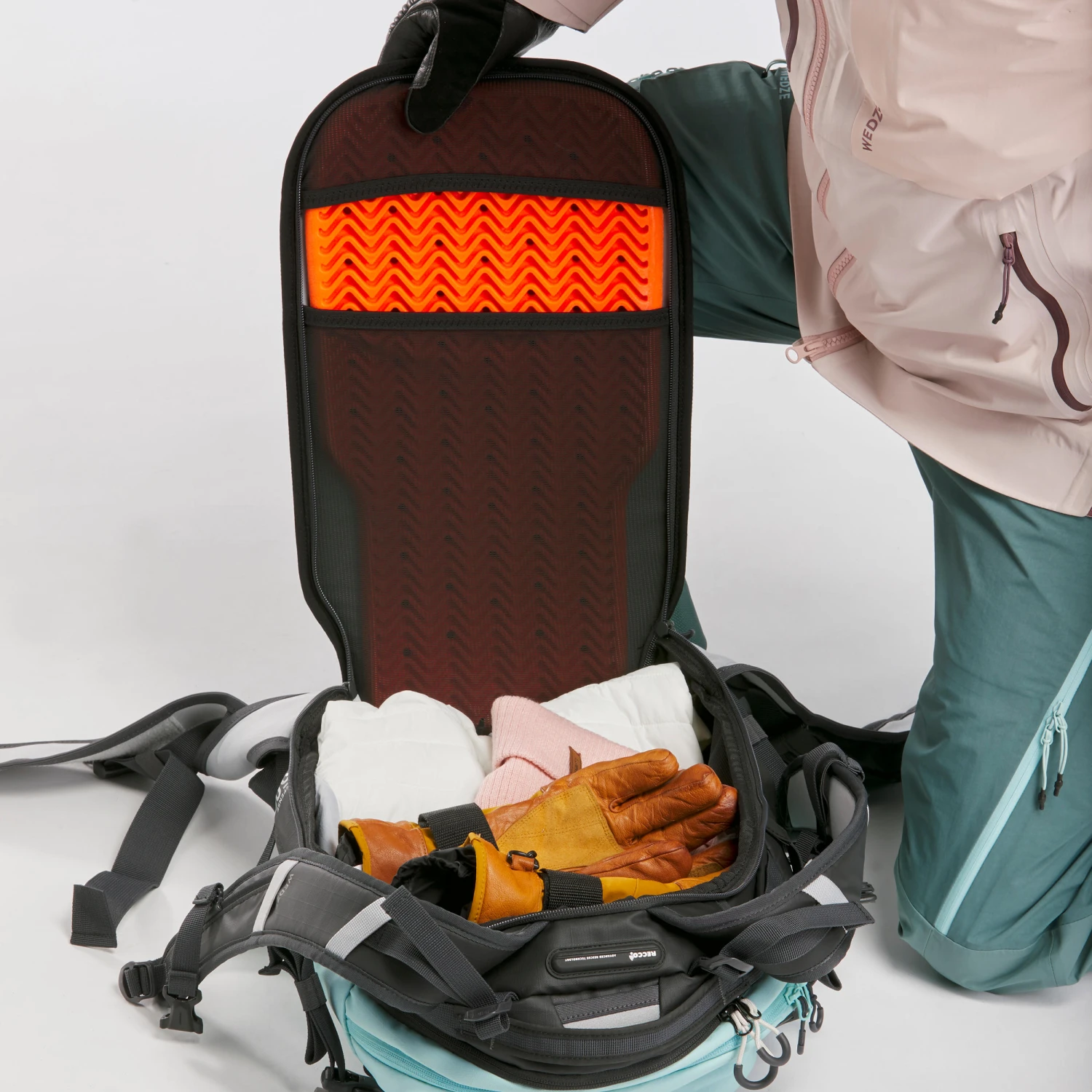 The bag comes with foam back protection tested according to a standard (NF EN 1621-2) and compliant with European regulations. This foam aims to protect you from strong impact caused by falls when freeride skiing.