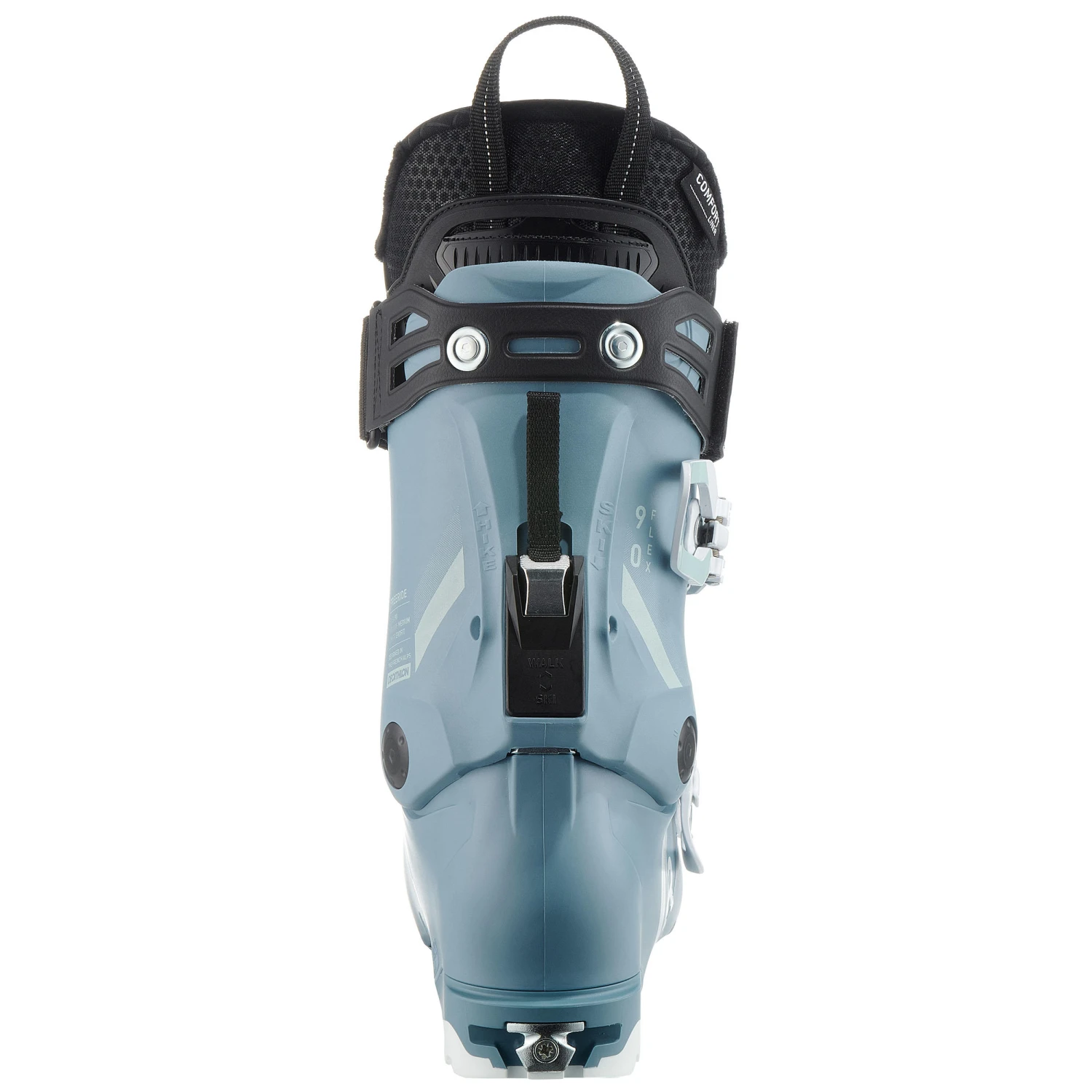 To provide an indication of rigidity, brands assign a flex rating to every boot. This figure indicates the rigidity of the whole boot: the higher the figure, the stiffer the shell. It is generally considered that a flex of 70 is for average to intermediate level skiers. A flex from 70 to 90 is for intermediate skiers. Beyond this value, the products are aimed at advanced skiers. Heavy builds can, however, go up a level.